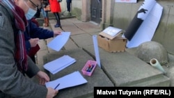 В Петербурге 7 ноября у здания бывшего ВНИИБ целлюлозно-бумажной промышленности собралось более 30 человек на акцию протеста против сноса здания. Они собрали подписи в его защиту, а также скандировали "Сносу нет!", передает корреспондент Север.Реалии.