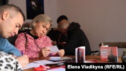 На мероприятие пришли также отец осужденного по делу "Сети" Юлия Бояршинова Николай и правозащитник Григорий Михнов-Вайтенко.